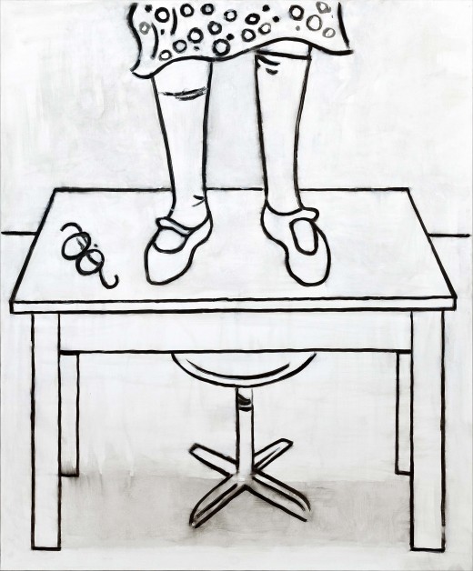 Все до одной картины этой бесконечной серии, хотя и написаны маслом на холсте, сознательно эмансипируют от привычной живописной ориентации и представляют собой картины — схемы, рисунки — руководства к действию. Голая линия подчеркивает внутреннюю точность жеста. Отсутствие цвета акцентирует конкретную определенность сюжета. Принцип «моментального снимка» положен в концептуальную основу художественного высказывания. Внешнее узнавание нарисованной истории происходит одновременно с ее фактическим происшествием на наших глазах. Время рассмотрения картины примерно равно времени нарисования этой картины. Эмоциональная составляющая тождественна логической целесообразности. Форма и содержание становятся одним целым. Здесь, как в караоке, стиль и способ высказывания не должны тормозить автоматический поток сознания. Единственная задача — установить быструю связь между конкретным зрителем и абстрактной коллективной памятью.