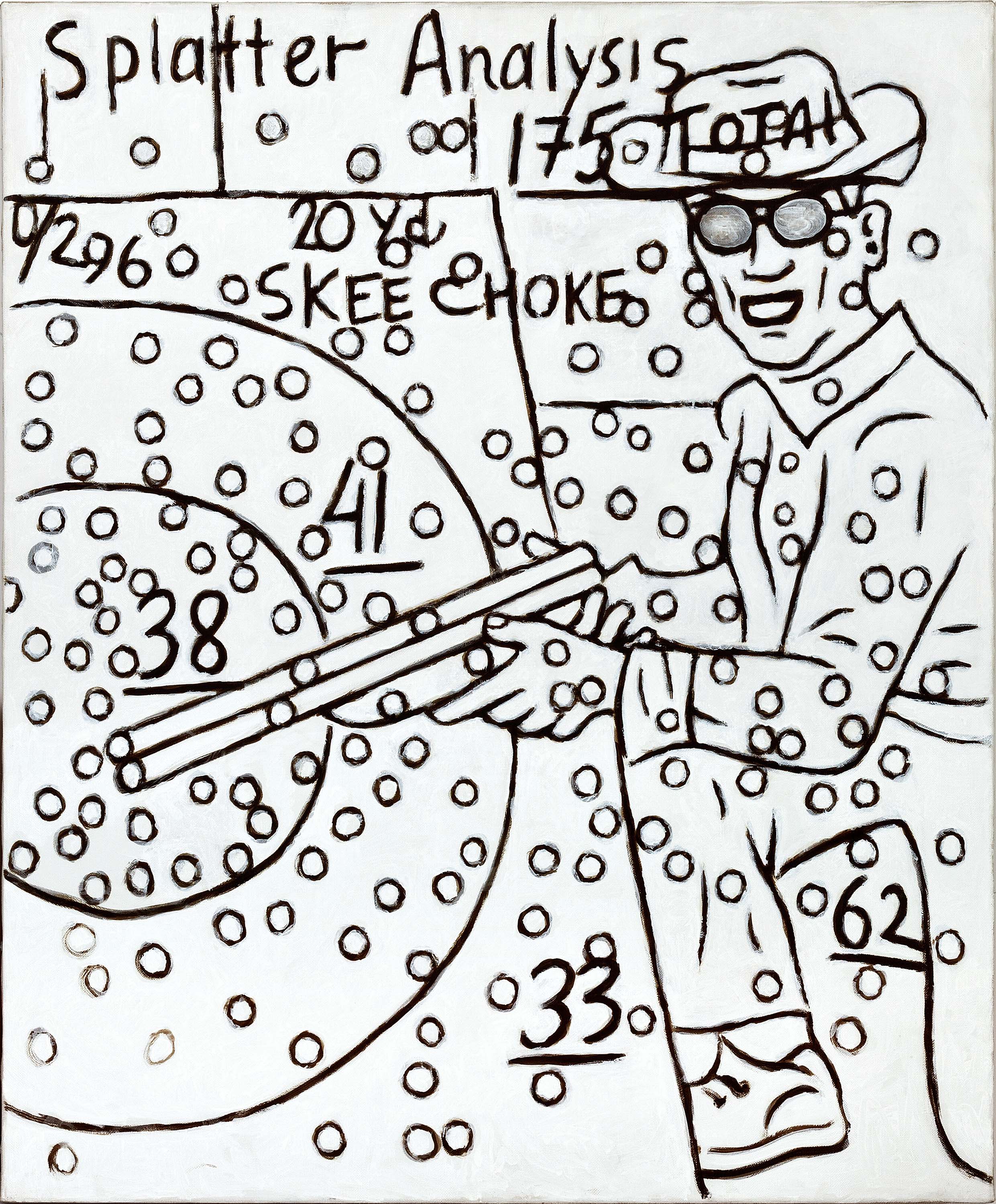 Все до одной картины этой бесконечной серии, хотя и написаны маслом на холсте, сознательно эмансипируют от привычной живописной ориентации и представляют собой картины — схемы, рисунки — руководства к действию. Голая линия подчеркивает внутреннюю точность жеста. Отсутствие цвета акцентирует конкретную определенность сюжета. Принцип «моментального снимка» положен в концептуальную основу художественного высказывания. Внешнее узнавание нарисованной истории происходит одновременно с ее фактическим происшествием на наших глазах. Время рассмотрения картины примерно равно времени нарисования этой картины. Эмоциональная составляющая тождественна логической целесообразности. Форма и содержание становятся одним целым. Здесь, как в караоке, стиль и способ высказывания не должны тормозить автоматический поток сознания. Единственная задача — установить быструю связь между конкретным зрителем и абстрактной коллективной памятью.