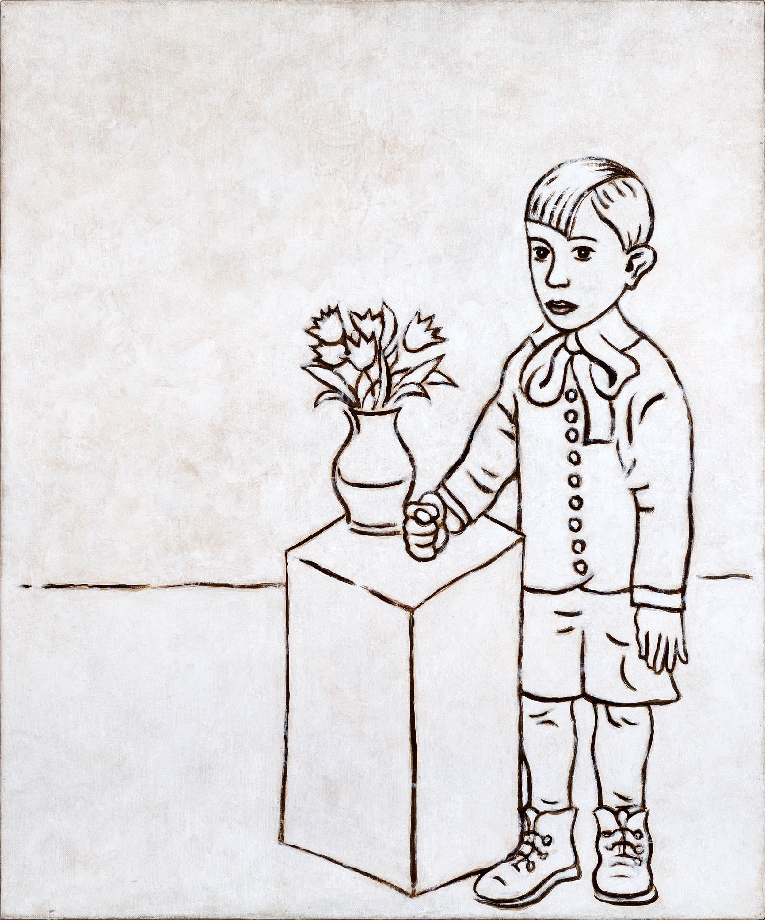 Все до одной картины этой бесконечной серии, хотя и написаны маслом на холсте, сознательно эмансипируют от привычной живописной ориентации и представляют собой картины — схемы, рисунки — руководства к действию. Голая линия подчеркивает внутреннюю точность жеста. Отсутствие цвета акцентирует конкретную определенность сюжета. Принцип «моментального снимка» положен в концептуальную основу художественного высказывания. Внешнее узнавание нарисованной истории происходит одновременно с ее фактическим происшествием на наших глазах. Время рассмотрения картины примерно равно времени нарисования этой картины. Эмоциональная составляющая тождественна логической целесообразности. Форма и содержание становятся одним целым. Здесь, как в караоке, стиль и способ высказывания не должны тормозить автоматический поток сознания. Единственная задача — установить быструю связь между конкретным зрителем и абстрактной коллективной памятью.